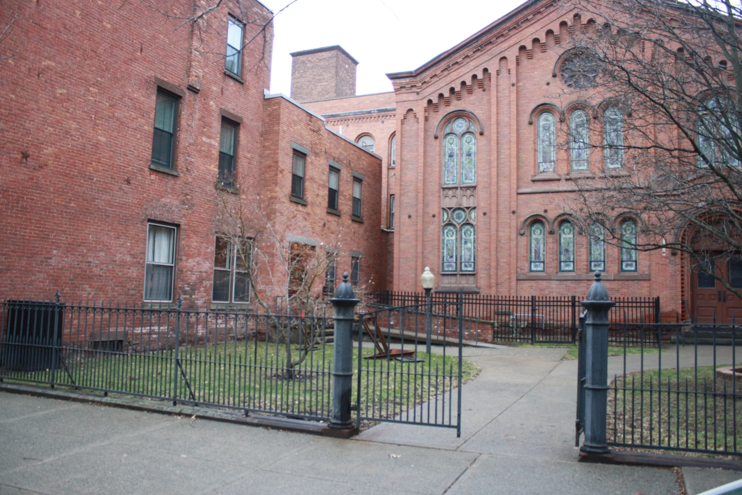 The building is located on 5th Avenue between Grand St. and Fulton St. next door to the First United Presbyterian Church. Street parking on 5th Ave. is free for 2 hours, and it is usually not difficult to find a spot on weekdays. I do not recommend parking in nearby parking lots as they are private.